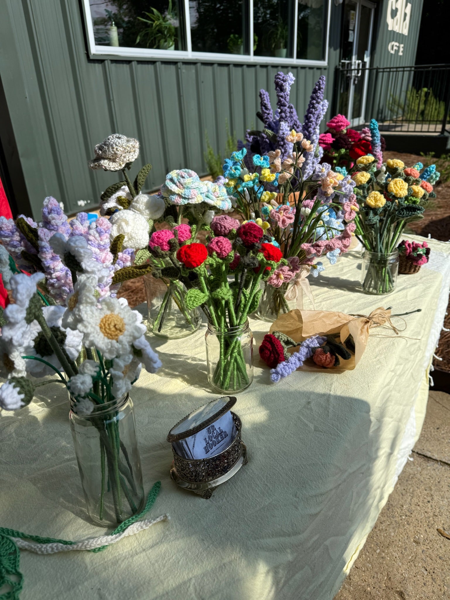 Hi! My name is Rachel, and I'm ur local hookr. From crochet to embroidery, everything you find on this website is handmade by me. I find sustainability + veganism very important, so I use recycled & reclaimed materials in all my art. Because of this, everything I sell is truly one of a kind. I love to use traditional feminine crafts to create subversive & irreverent art. As a queer fiber artist in the American South, I hope to create a space here that feels welcoming to all. ♥