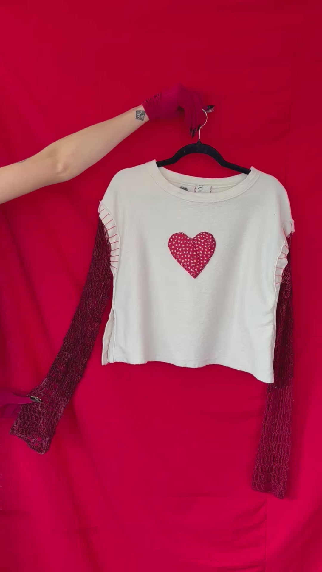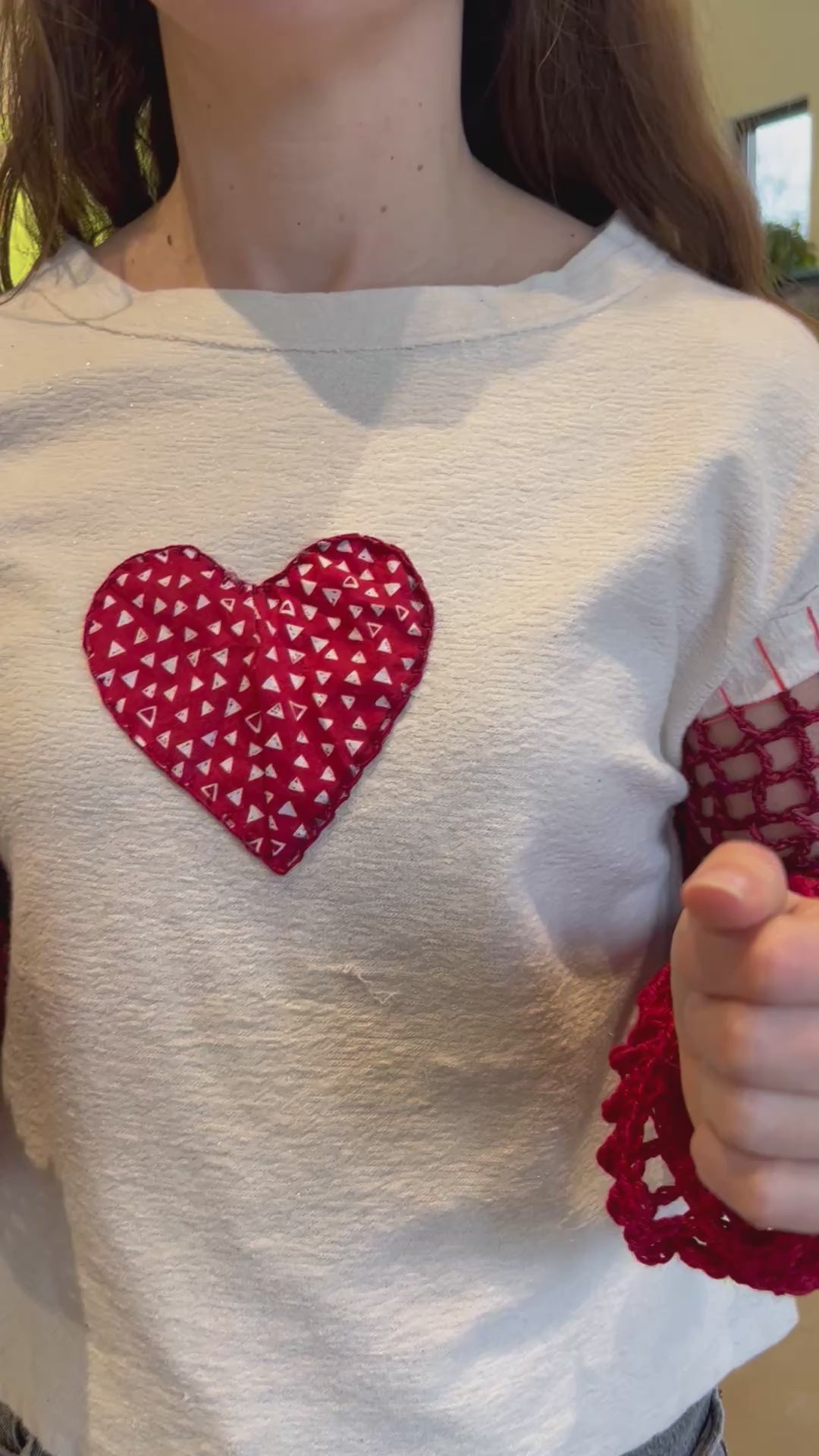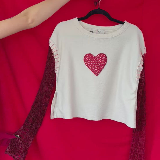 She’s classic and never overstated. Thrifted Anthropologie shirt with a hand stitched heart and added crochet sleeves. You know you love her.