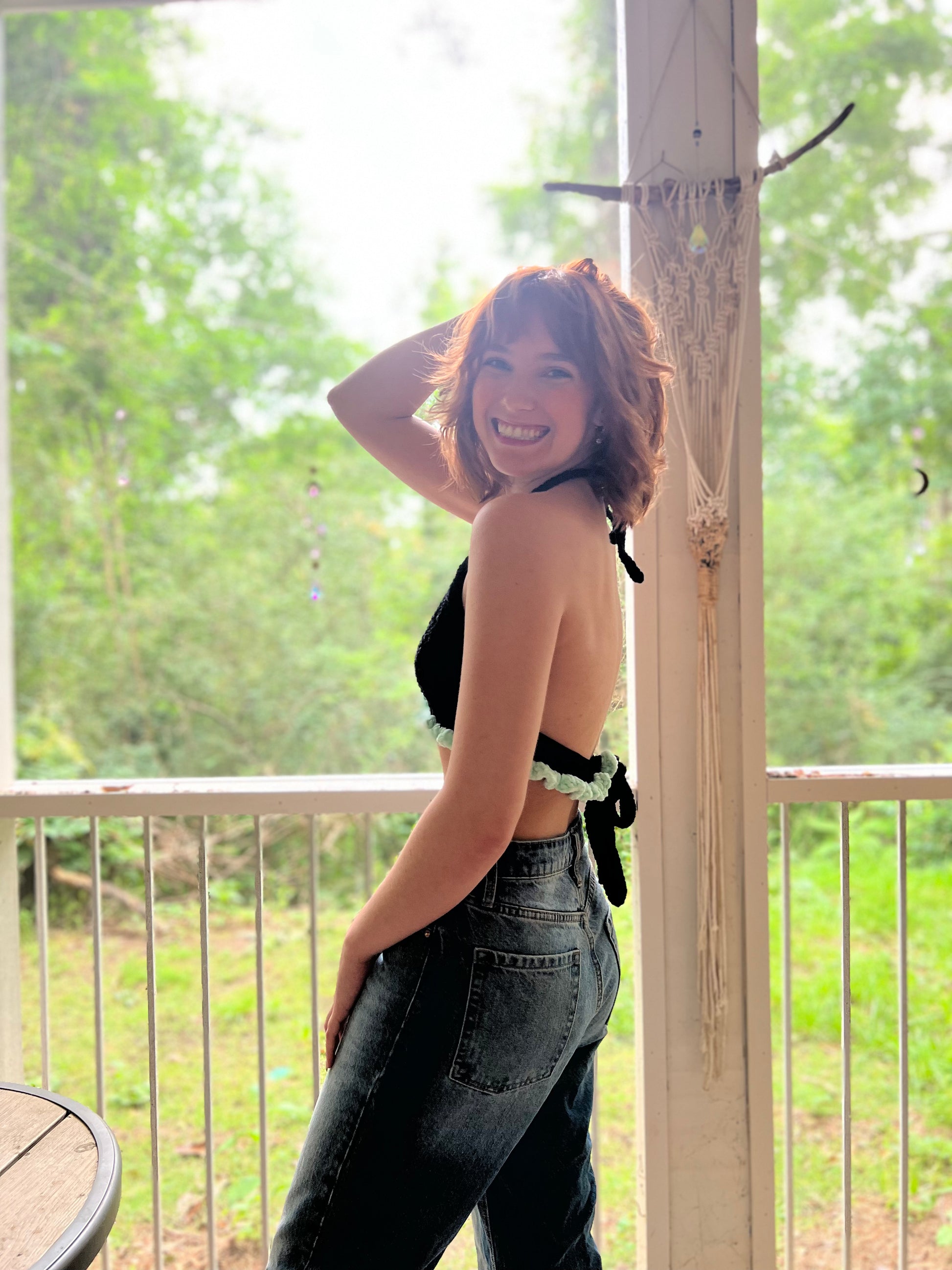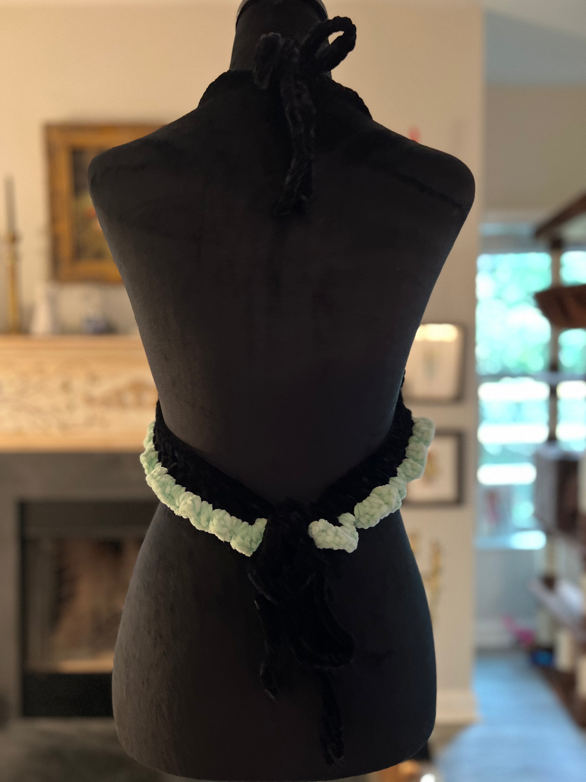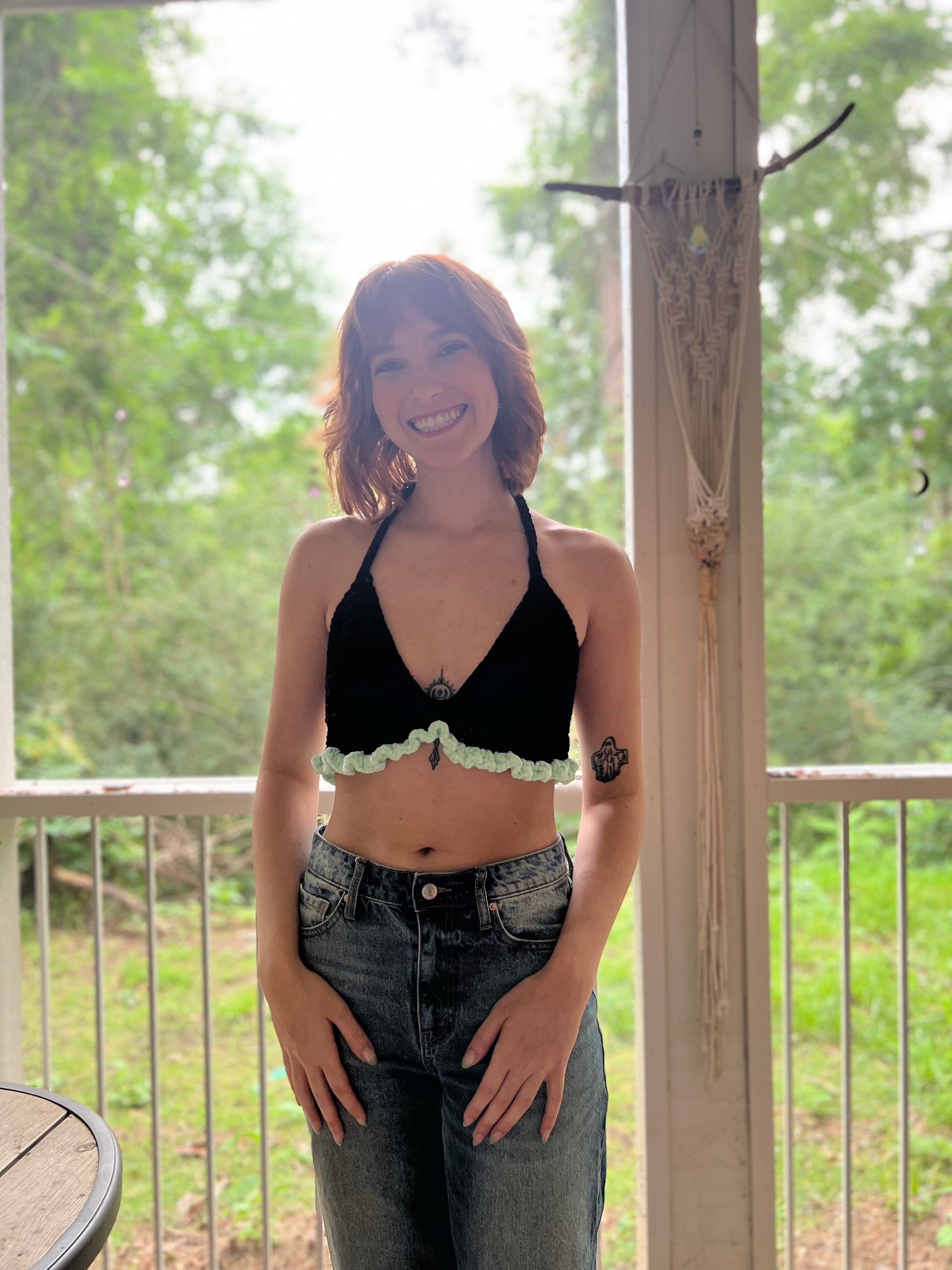 The Lettuce Lover Crop Top is a soft, velvety triangle top that is both adjustable and versatile. Perfect for festivals or a night out, this crocheted top offers comfort and style in one. Stay cool and stylish with this must-have addition to your wardrobe.