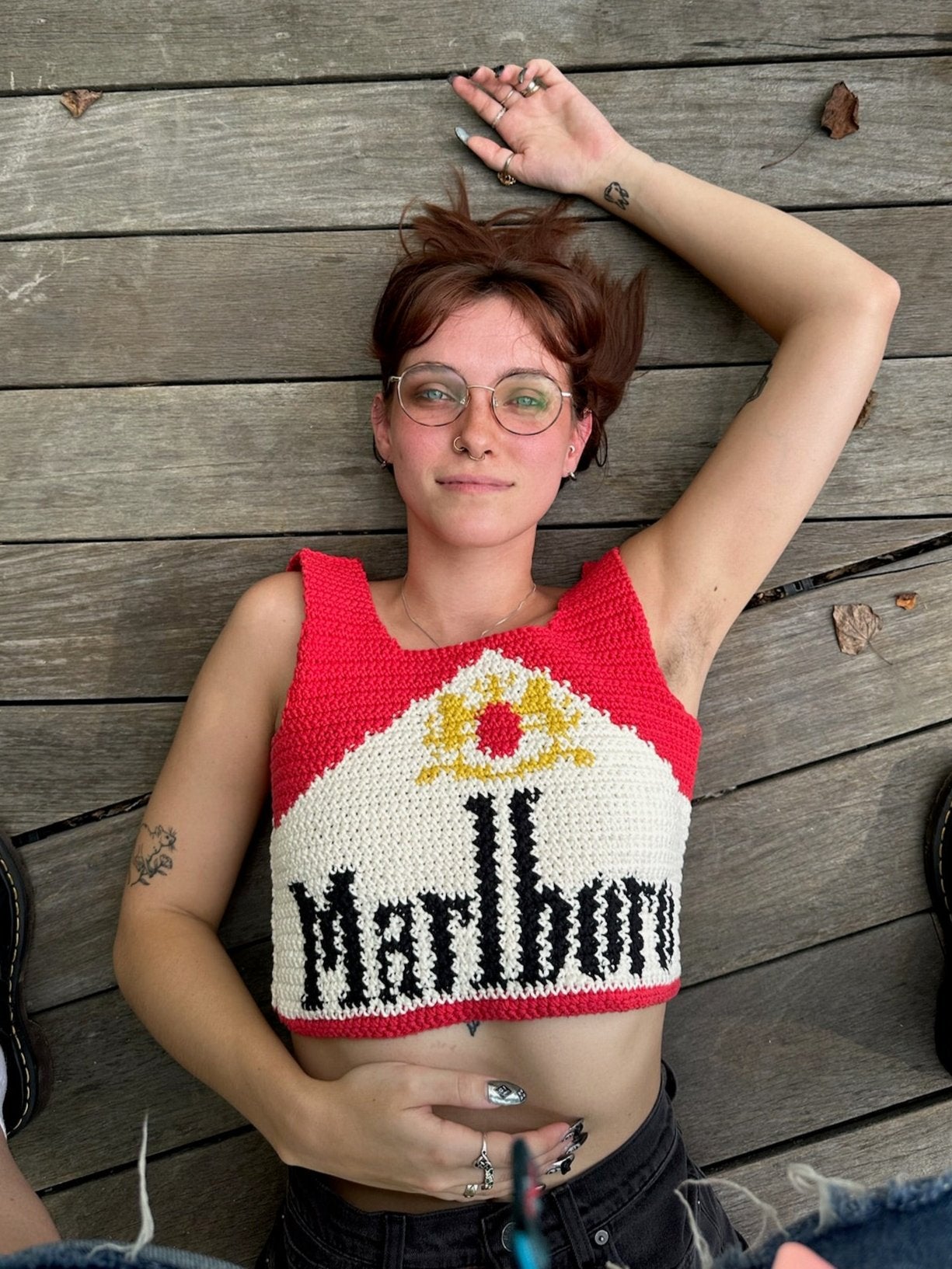 This Marlboro Red tank top is inspired by Ethel Cain's song "Crush". It is crocheted from 100% cotton yarn for sustainability and comfort because I believe festival fashion can and should be ethical, too. It is made to order, so while this top will take longer to arrive to you, it will be custom made for your body and there won't be another like it. When you check out with this item, I will contact you for measurements, so no worries if you don't identify exactly with the standard sizes listed.