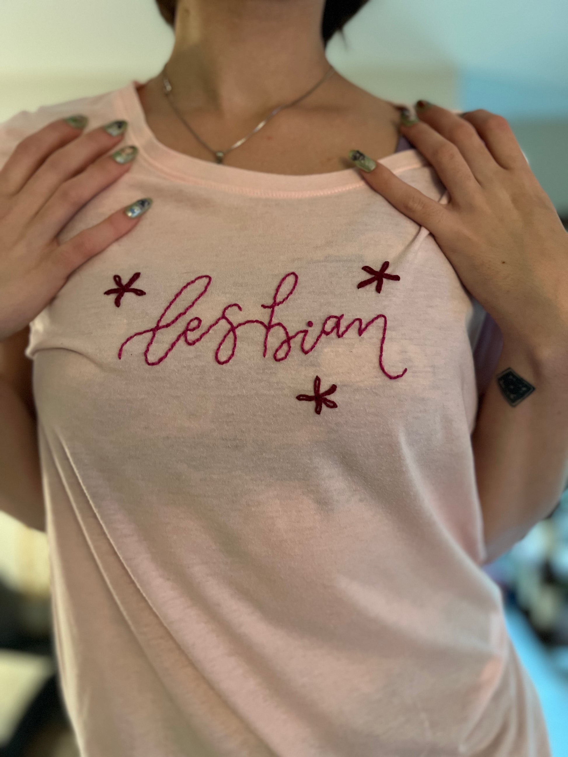 Pink "Lesbian" Embroidered TShirt