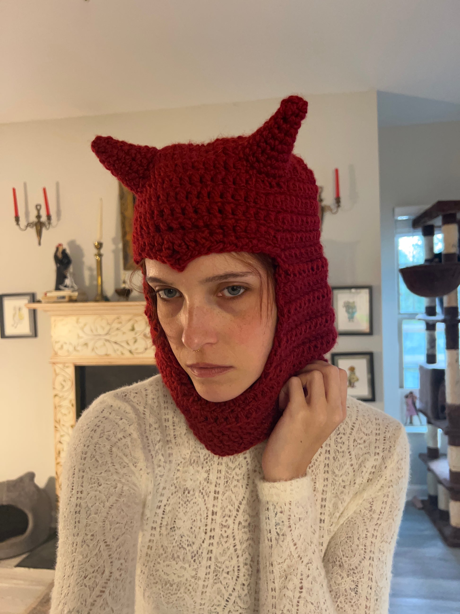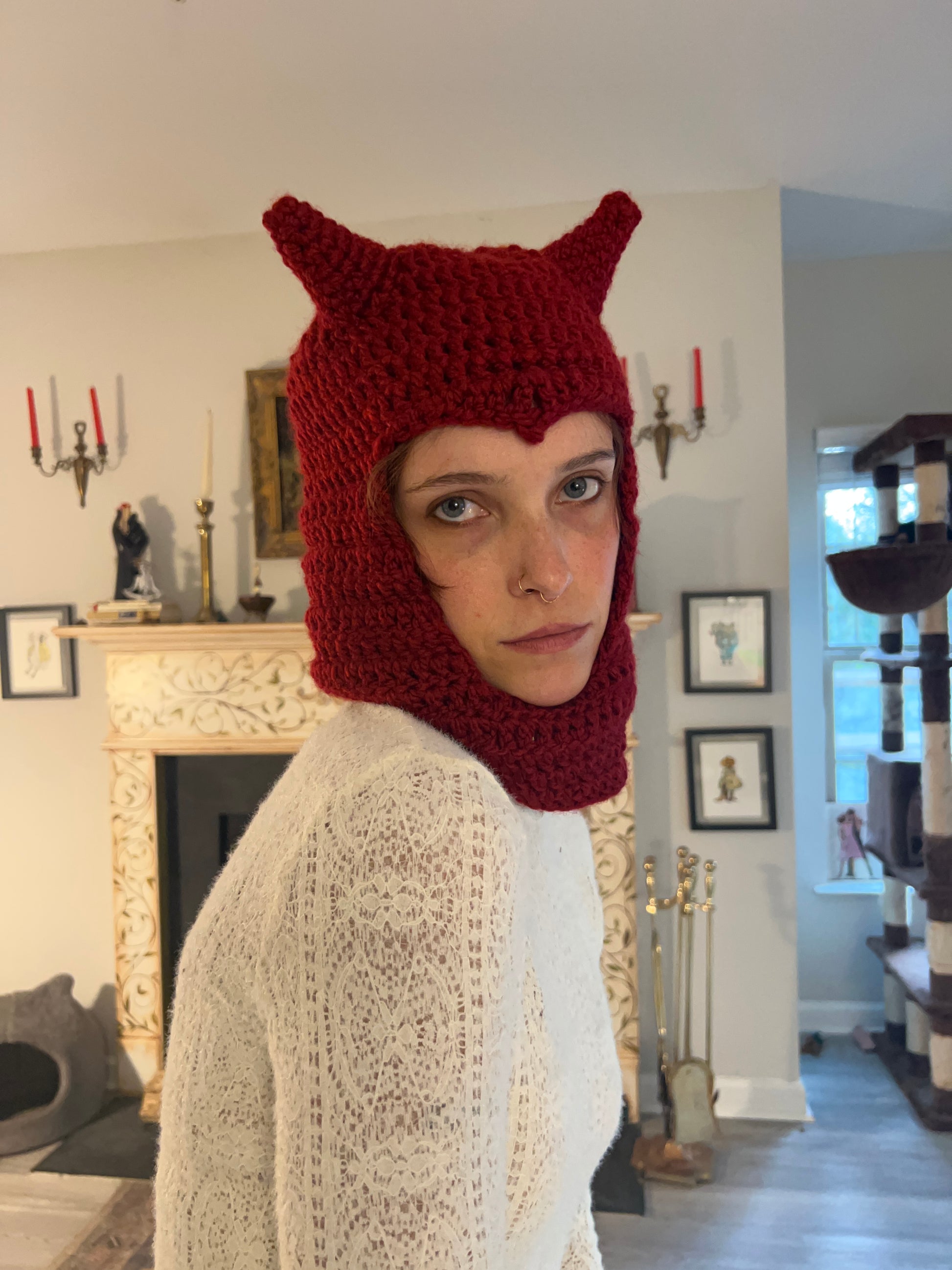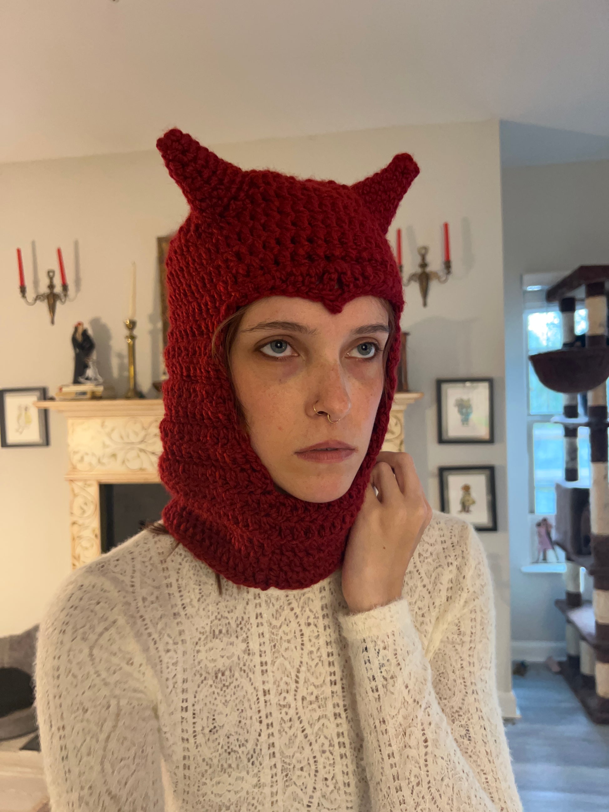 People say I’m jealous, but my kink is watching you look so stinkin’ cute in the clothing I make, like this balaclava! I don’t know what I’m doing with this description, but you get the point. This balaclava is super inspired by the queen Chappell Roan, but it was made by your favorite crocheter’s favorite crocheter (me). It’s super soft and warm for winter, and I can almost guarantee you’ll be the only one of your friends with anything like it, (unless all of your friends are freaks like me, which is very possible since you’re on my website.)