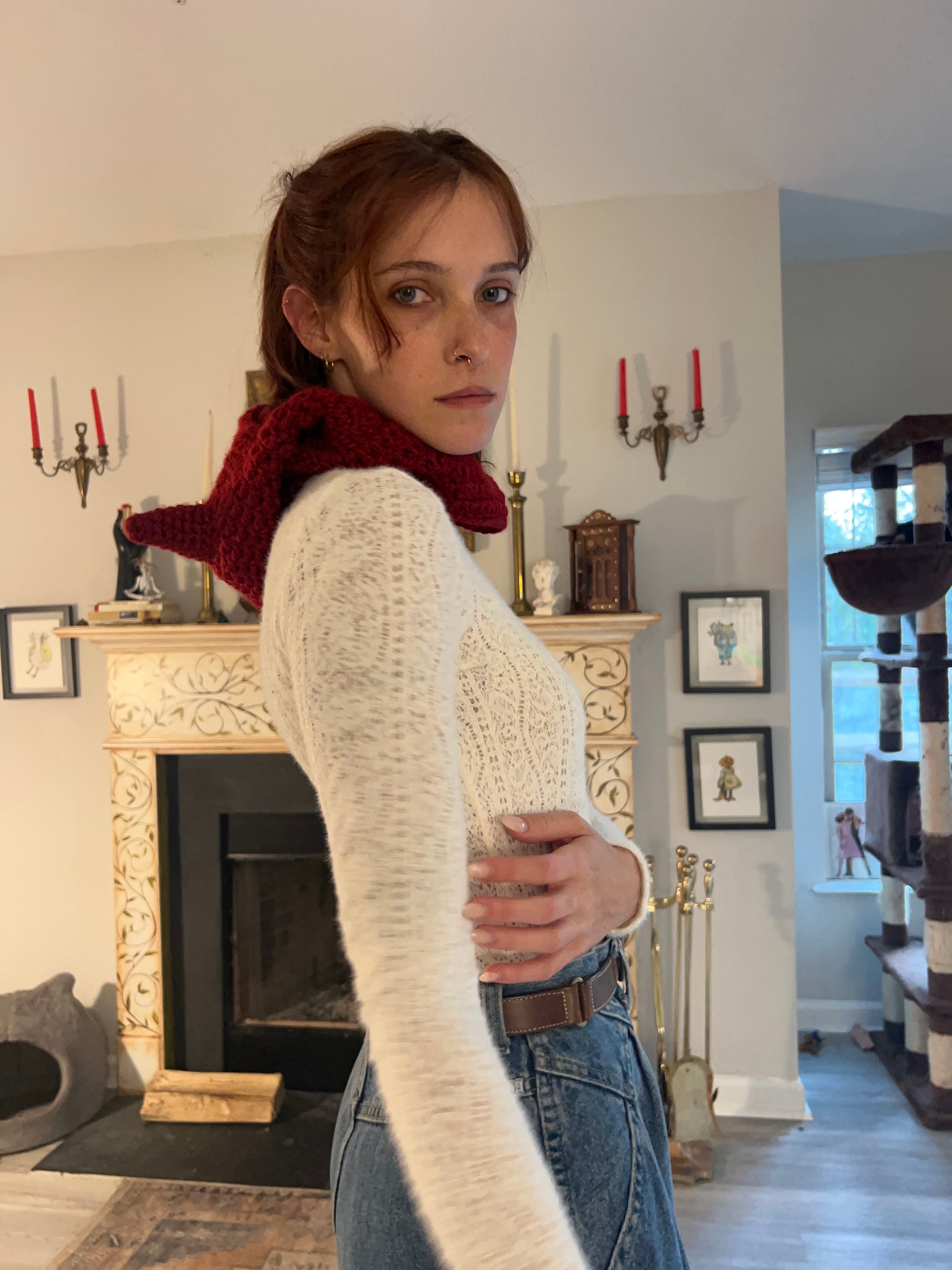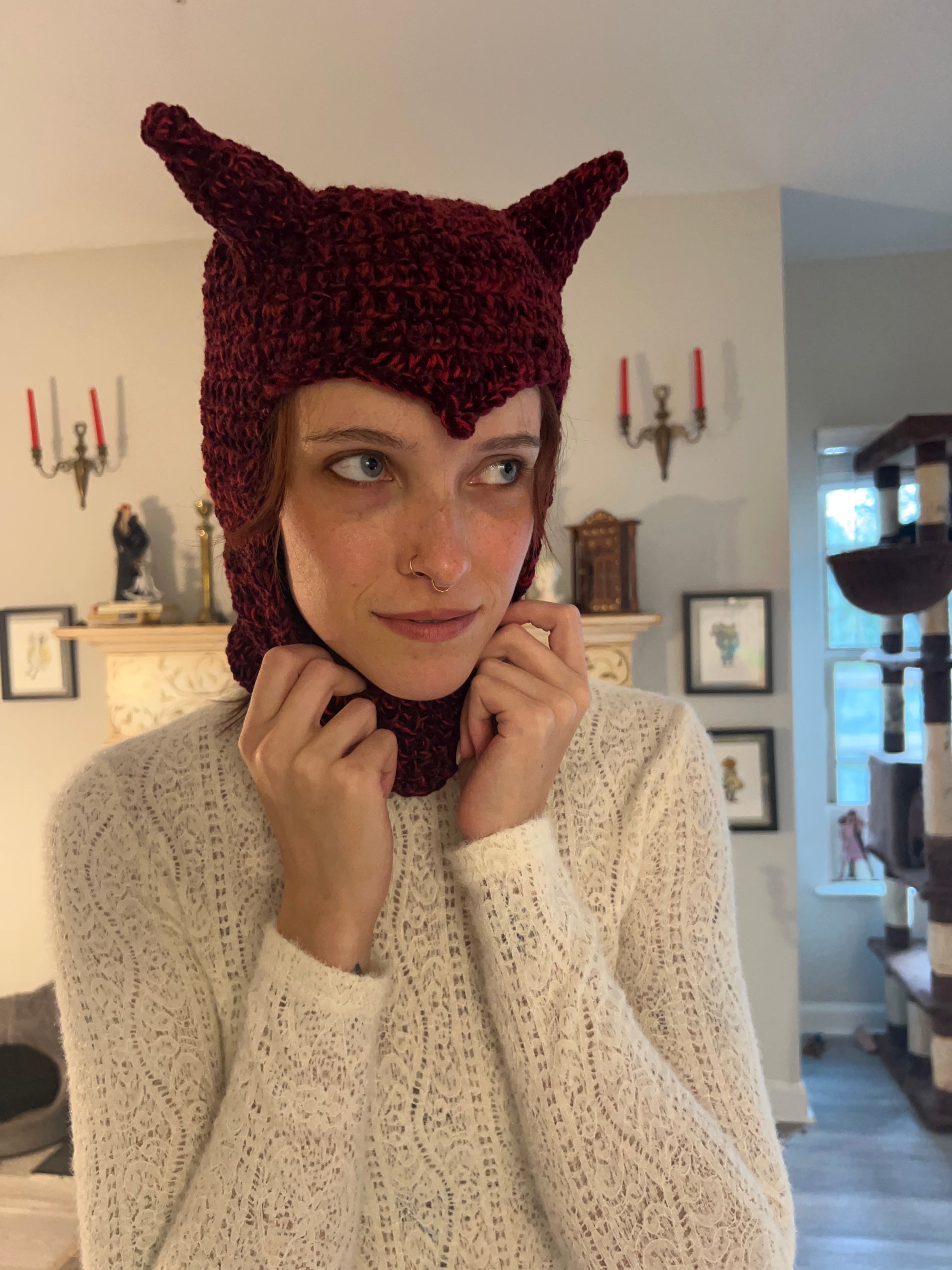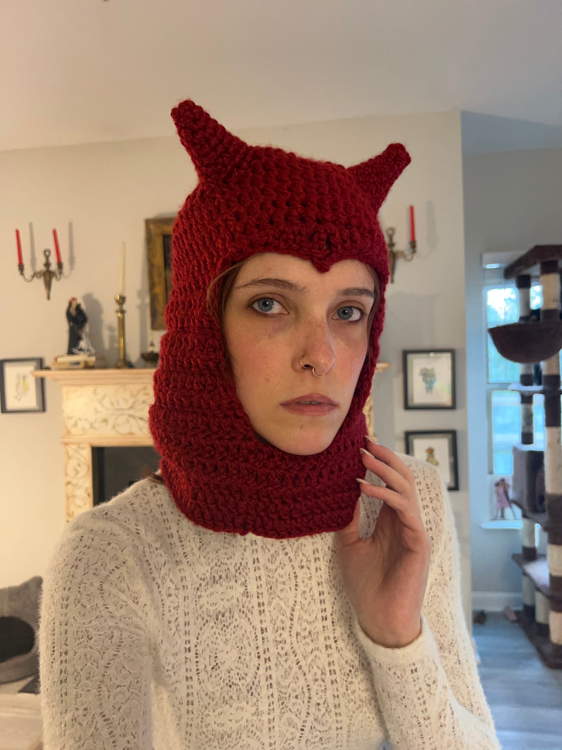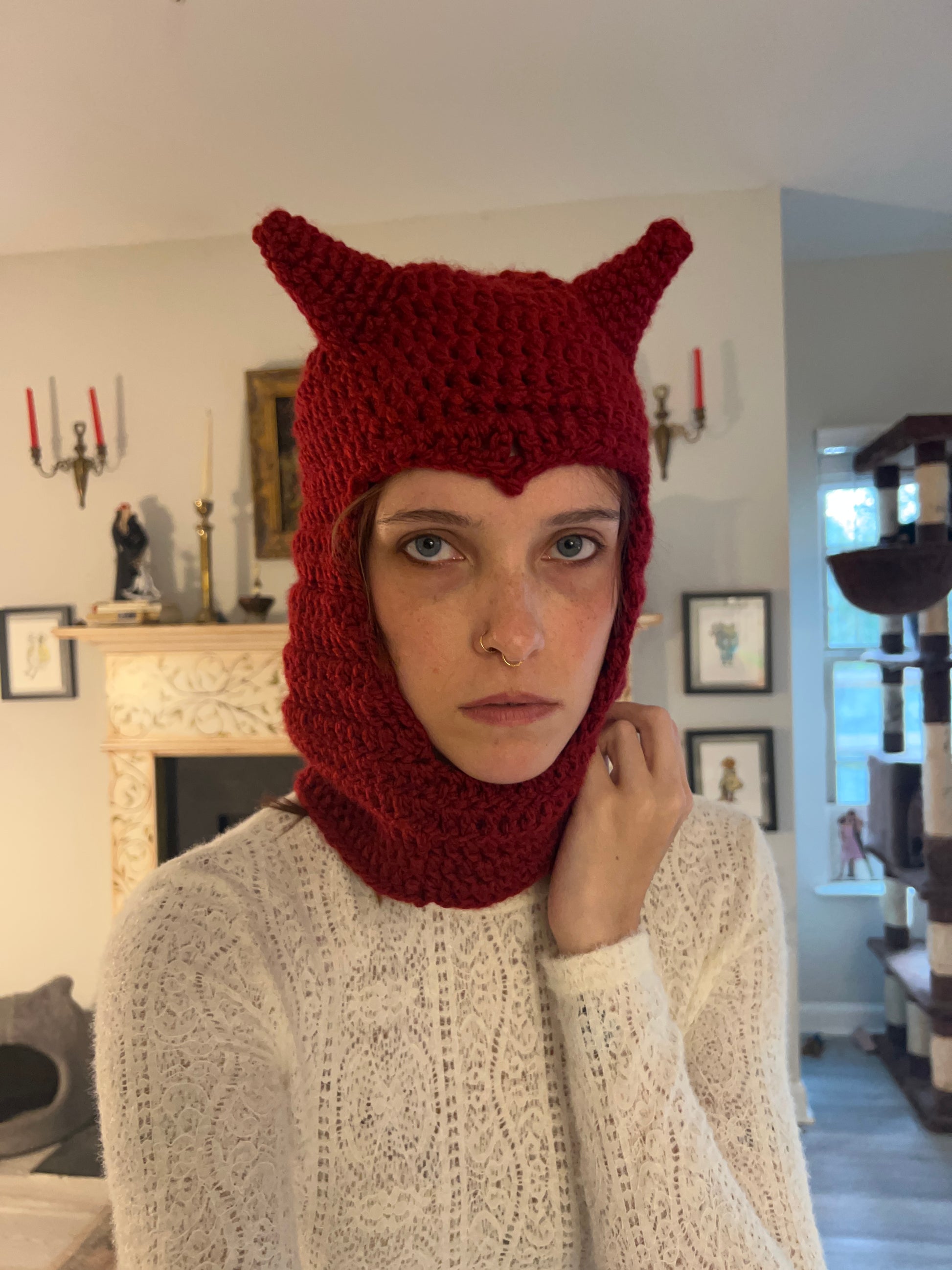 People say I’m jealous, but my kink is watching you look so stinkin’ cute in the clothing I make, like this balaclava! I don’t know what I’m doing with this description, but you get the point. This balaclava is super inspired by the queen Chappell Roan, but it was made by your favorite crocheter’s favorite crocheter (me). It’s super soft and warm for winter, and I can almost guarantee you’ll be the only one of your friends with anything like it, (unless all of your friends are freaks like me, which is very possible since you’re on my website.)