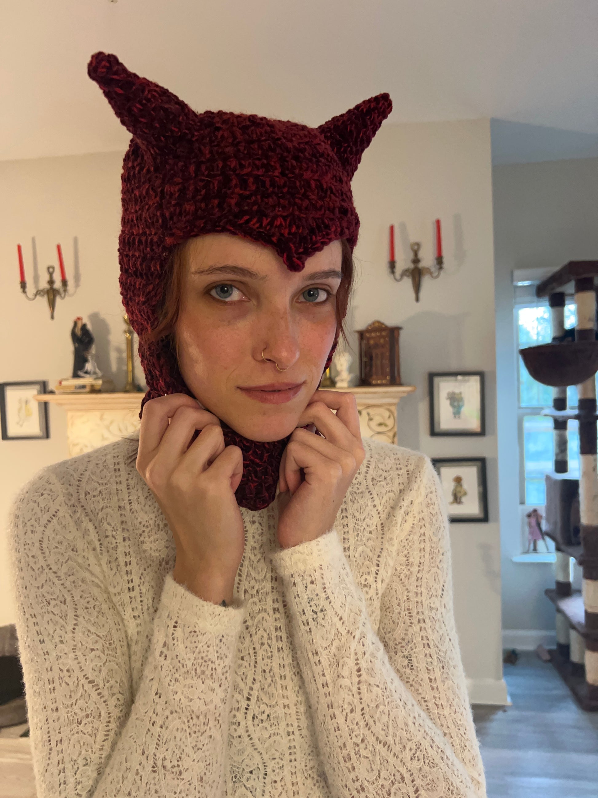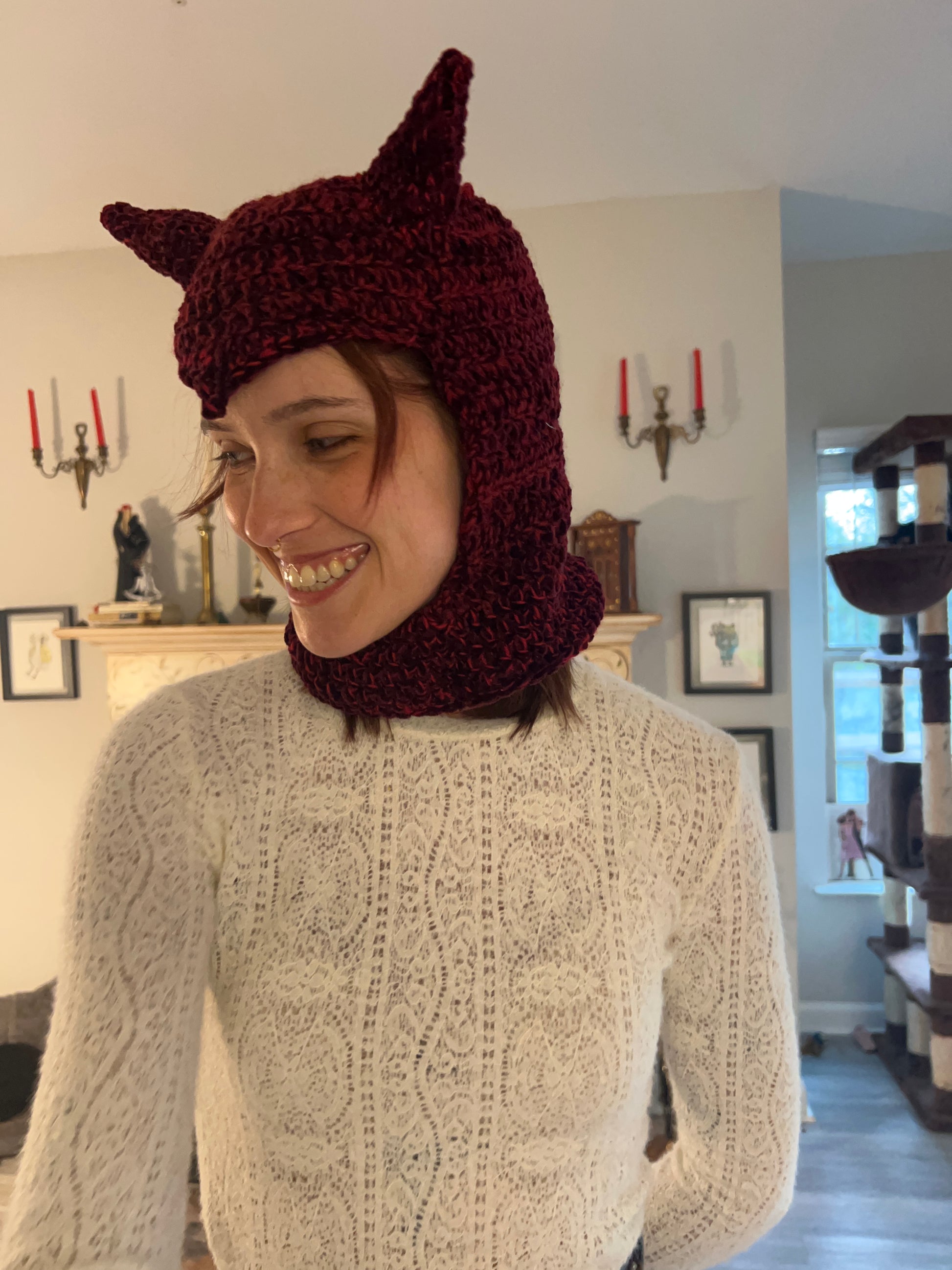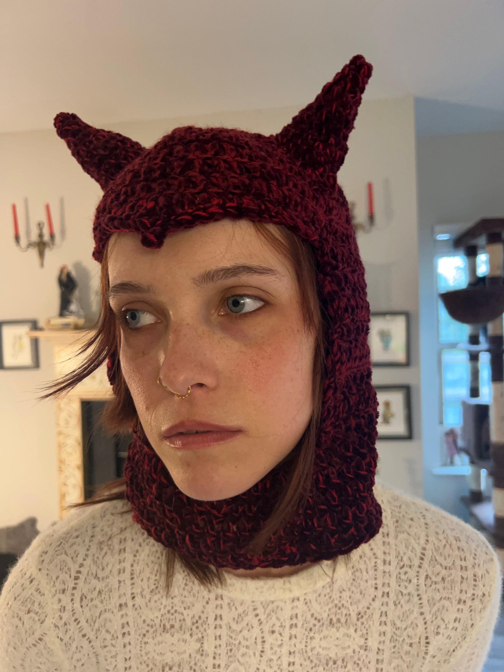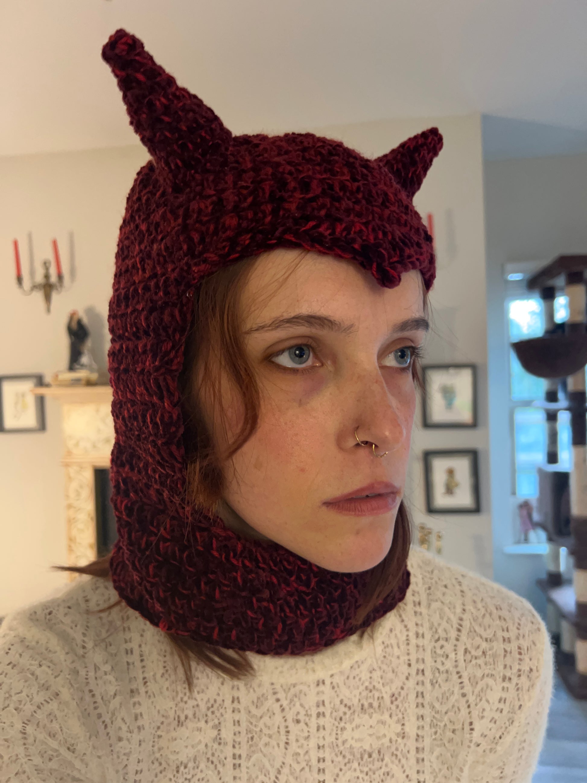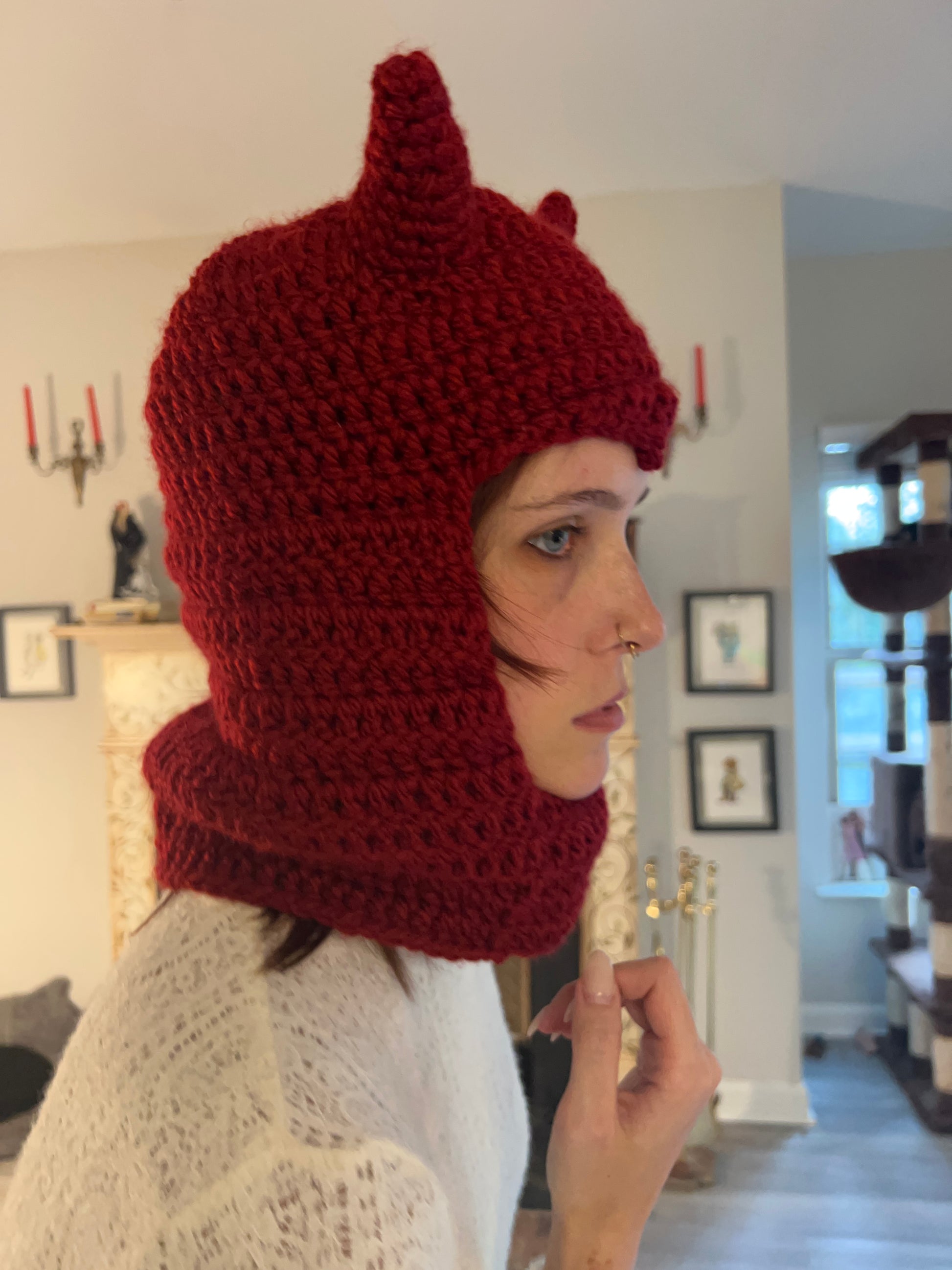 I Didn’t strictly follow a pattern, but my base was “Devil Hat Pattern” by @allyrosi